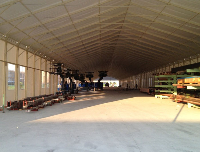 大型倉儲(chǔ)篷房采用高強(qiáng)度鋁合金框架,雙面PVC涂層篷布,蓬內(nèi)無支柱。蓬內(nèi)使用容量寬廣,大型倉儲(chǔ)篷房有10米到50米多種跨度,單元長(zhǎng)度有3米、5米兩種,并且有多種高度可供客戶選擇。